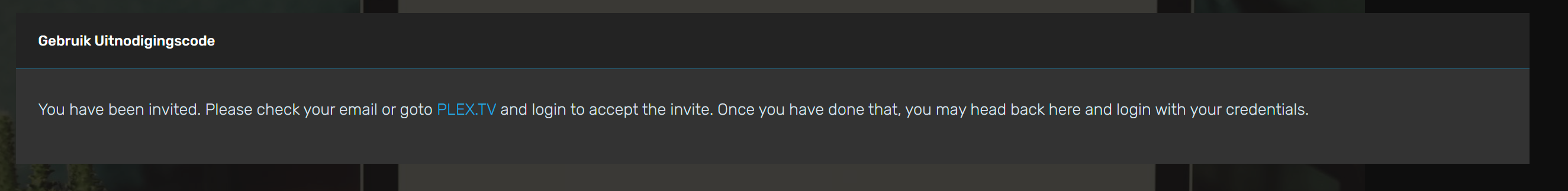 Indien de aanvraag voor een Plex account niet lukt, zal je rechts onderin de fout zien. Bijv mail al bekend bij Plex - Is de aanvraag gelukt dan krijg je volgend scherm te zien: